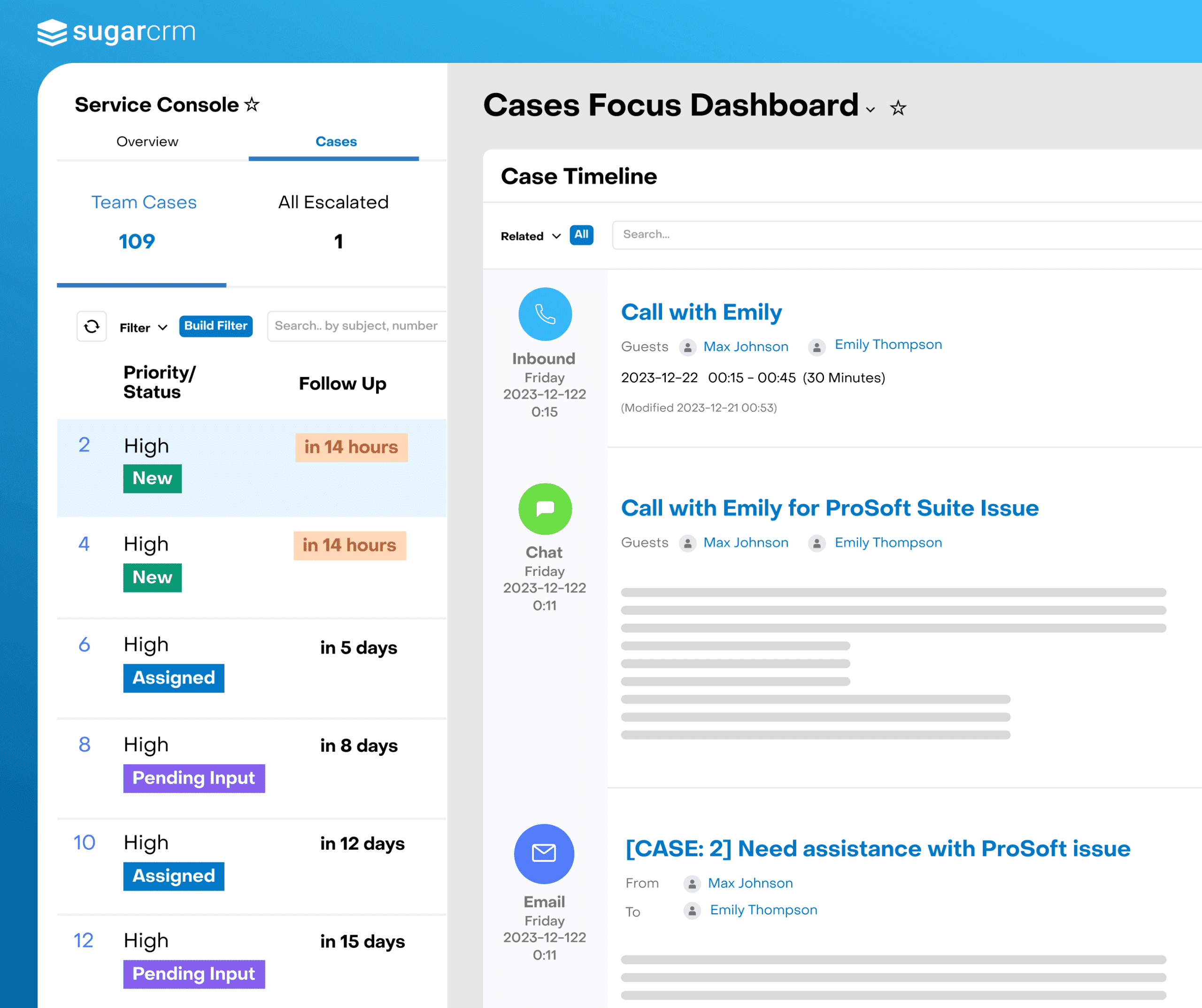 Sugar Serve unterstützt Ihren Kundenservice dabei, schneller und persönlicher zu arbeiten. Ihre Servicemitarbeiter erhalten alle relevanten Informationen und Werkzeuge, um Anfragen effizient über alle Kanäle hinweg zu bearbeiten.